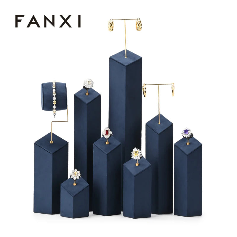 OIRLV Blue Microfiber Earrings Ring Necklace Jewelry Display Set TT304
