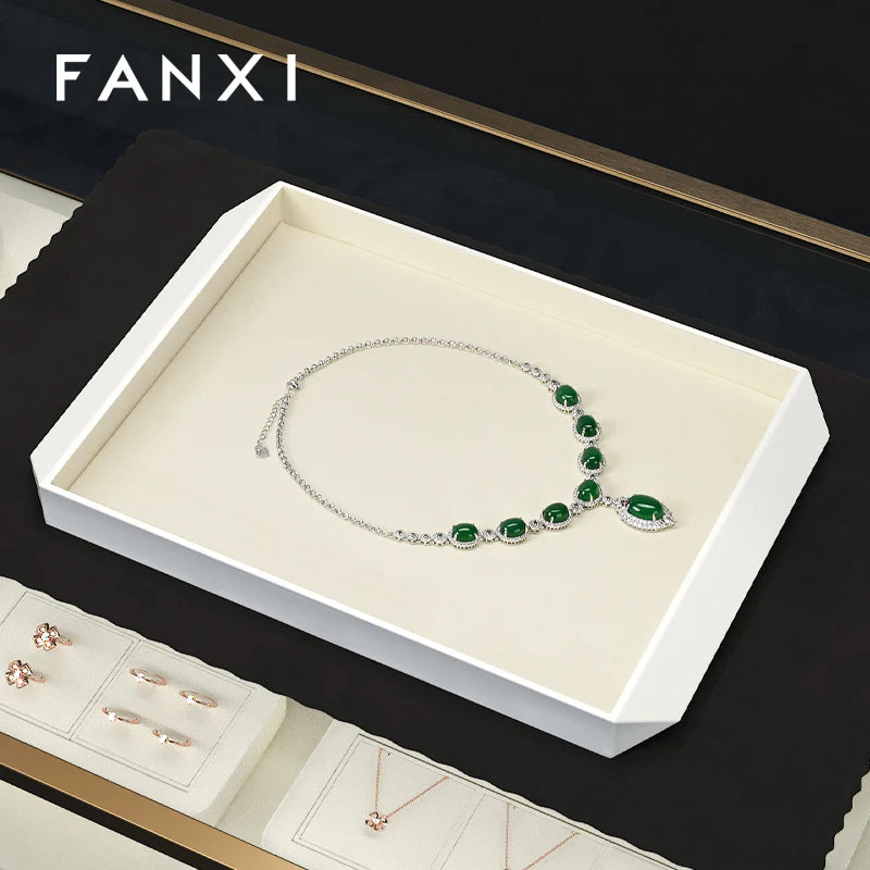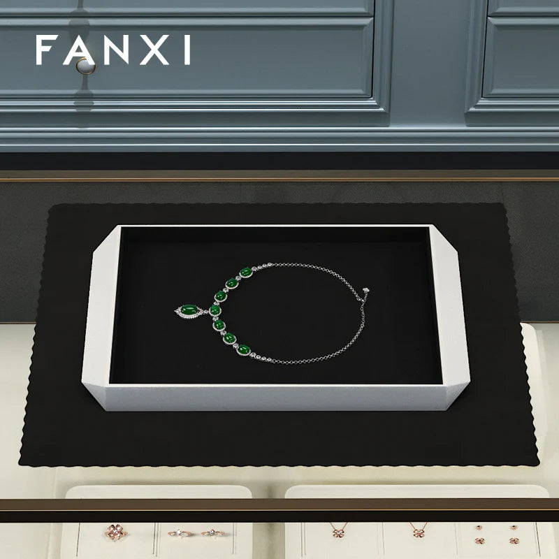 OIRLV Black/Beige Microfiber Ring Necklace Pendant Earring Display Tray P172