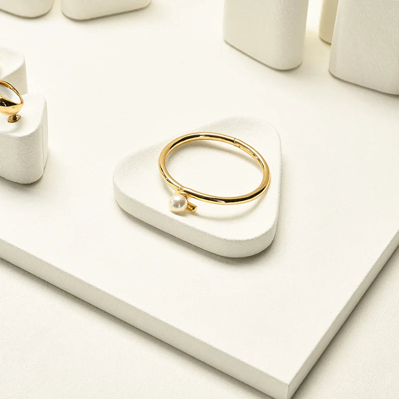 Beige Microfiber Earrings Ring Necklace Jewelry Display Set TT349