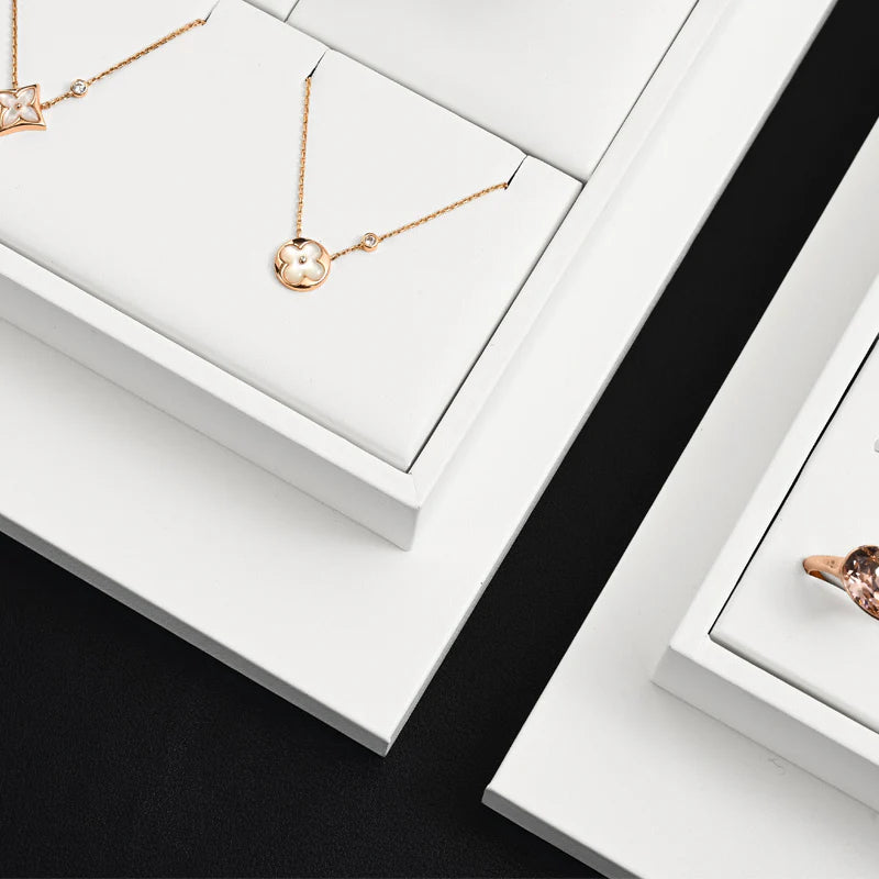 Oirlv White PU Leather Earrings Ring Necklace Jewelry Display Set TT323