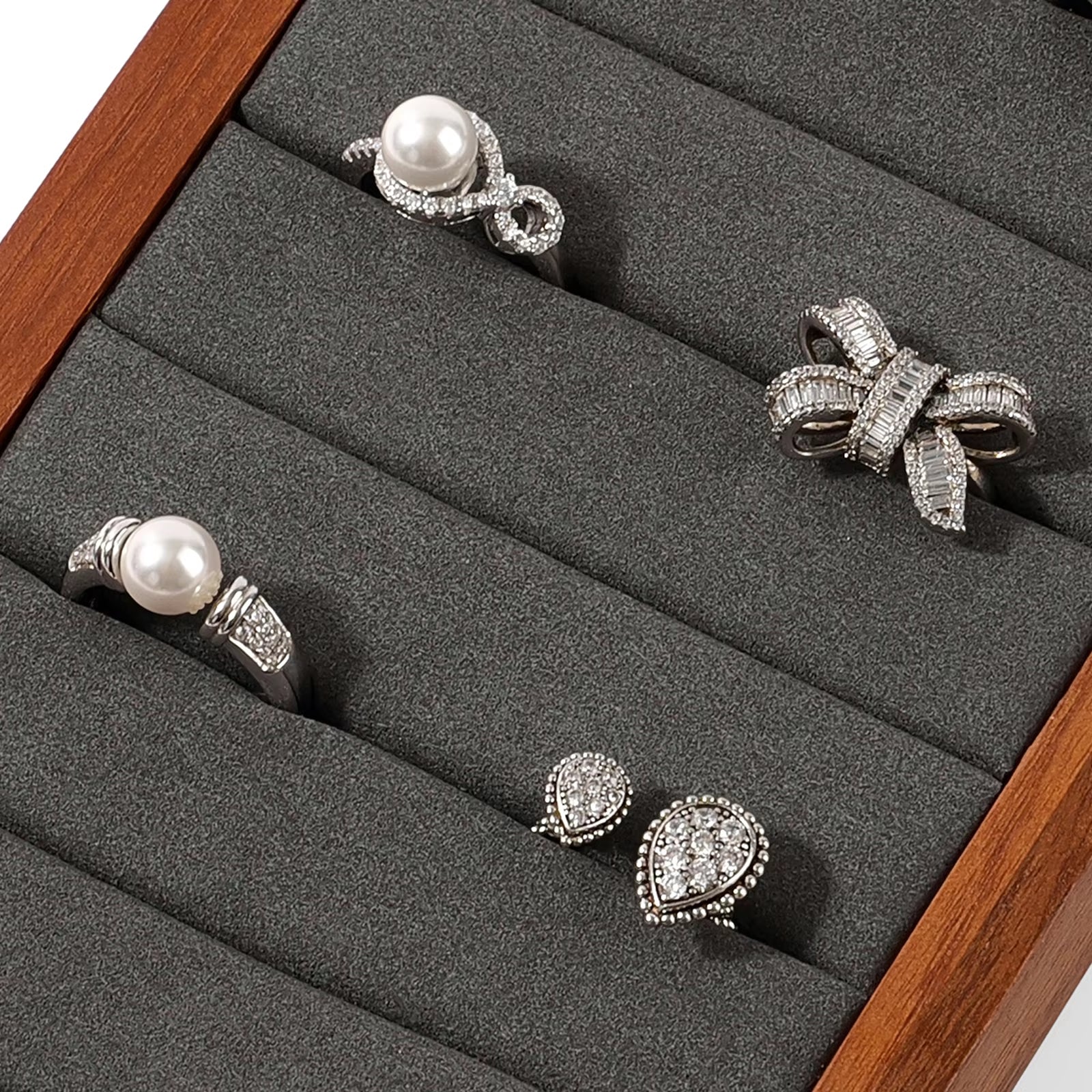 Oirlv Wooden Rings Organizer Shelf Microfiber Jewelry Display Stand:SM232